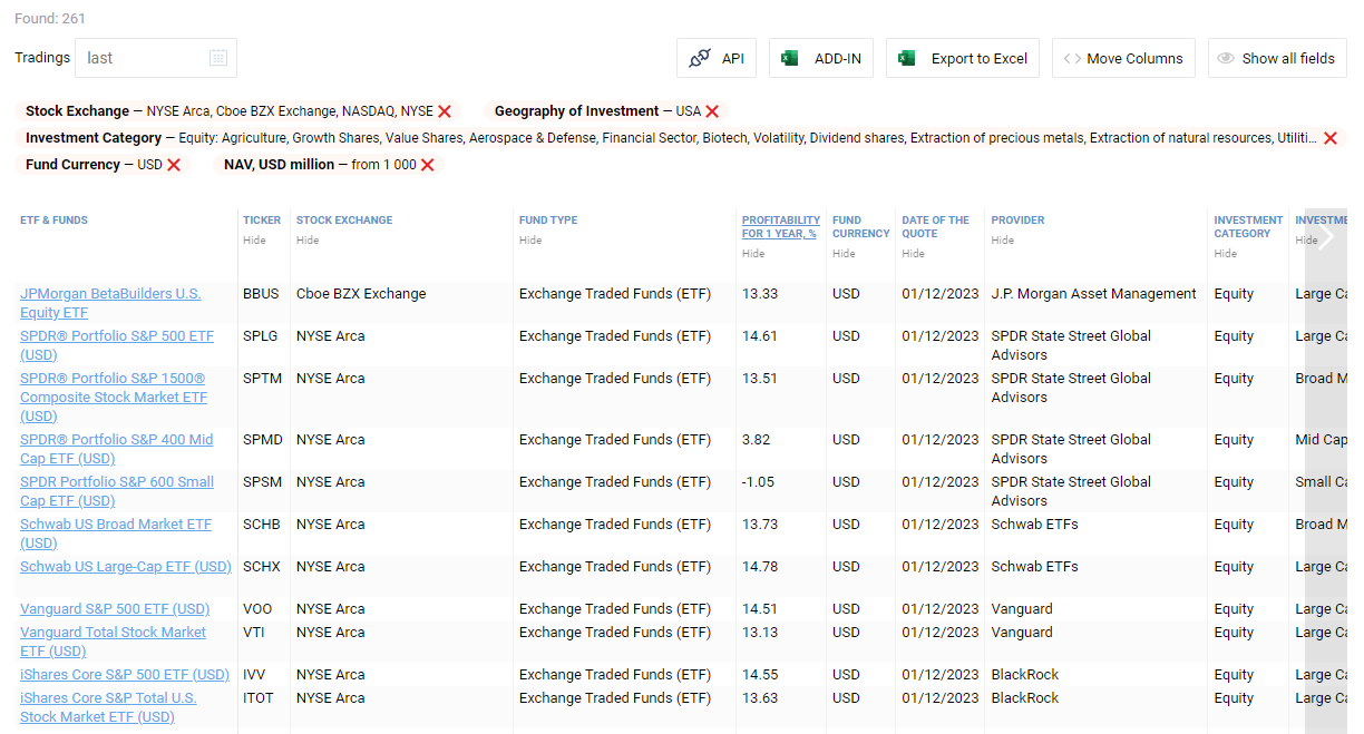 Cbondsデータベースには、米ドル、ユーロ、カナダドル、英国ポンド、スイスフラン建ての10,800以上のETFと93,100以上の投資信託が含まれており、ニューヨーク、ロンドン、トロント、フランクフルトの世界の取引所で取引されています。